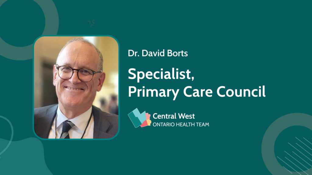 The Central West Ontario Health Team (CW OHT) is pleased to announce that Dr. David Borts has been selected as the new Primary Care Specialist representative for the CW OHT Primary Care Council (PCC), following an election at the October Central West Primary Care Network (CW PCN) Annual General Meeting.