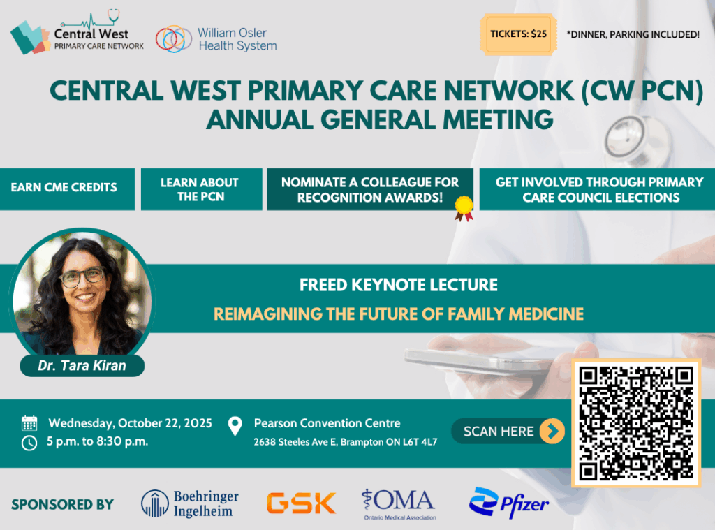 Ticket sales are now discounted for October’s Central West Primary Care Network Annual General Meeting! Register while quantities last.